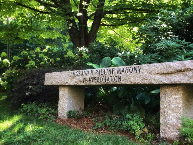 Dedicated in 2008, the Mahony Garden celebrates the memory of Amos Mahony (1917-2013) and his wife, Pauline (1917-2007). Amos and Pauline were both longtime Pepperell residents and community leaders. Amos joined the Lawrence Library Board of Trustees in 1953, and for the next sixty years, he remained a steadfast library supporter, guardian, and visionary. He was the longest-serving library trustee in the state of Massachusetts. Pauline was a founder of the Pepperell Garden Club, served as chairwoman of the Pepperell Woman's Club, and was a teacher in the North Middlesex School District. The Mahony Garden is situated directly behind the library building.