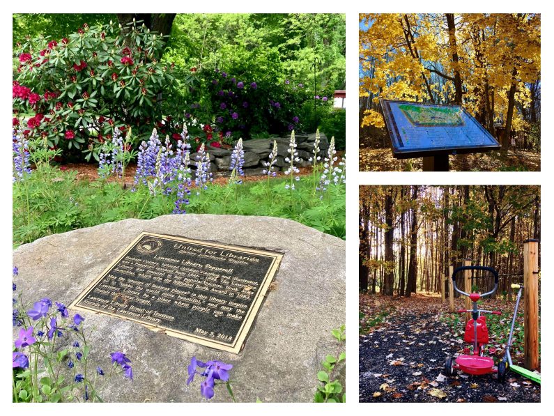 In 2018, the Lawrence Library opened a spur trail to the Greens Brook Trail behind the library. The only one of its kind at a Massachusetts public library, the trail is accessible to people with motor and visual impairments. The trail also features a native plant garden. This project was made possible by the Nashoba Conservation Trust, and the Friends of the Library.